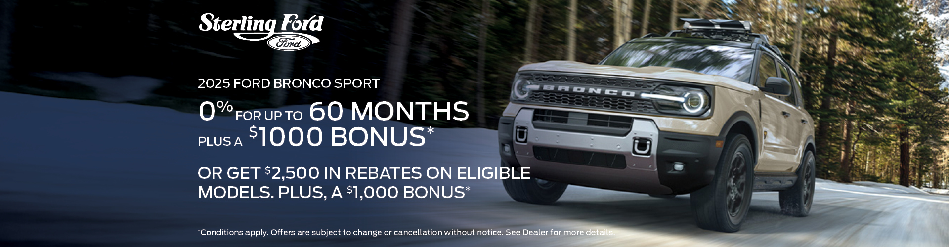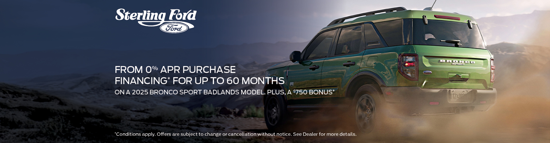 Looking for a friendly, knowledgeable, and bilingual Ford dealership specializing in new and used Ford cars, trucks, and SUVs in Ottawa and nearby areas like Orleans, Gatineau, Hull, and Kanata? Sterling Ford is your go-to destination. With the biggest selection of new Ford vehicles in Ottawa, we pride ourselves on delivering exceptional customer service. Whether you’re looking for a new Ford F-150, Bronco, Escape, Mach-e, Lightning, Transit, Mustang, Edge or Explorer, we have the perfect vehicle to meet your needs offering a wide selection of the latest Ford models and trims. Visit our showroom today and experience the Sterling Ford difference—where your next Ford is waiting!