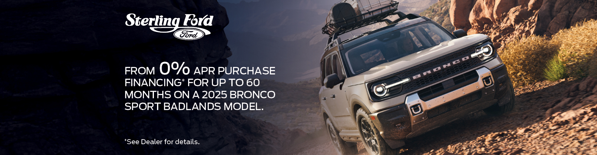 Looking for a friendly, knowledgeable, and bilingual Ford dealership specializing in new and used Ford cars, trucks, and SUVs in Ottawa and nearby areas like Orleans, Gatineau, Hull, and Kanata? Sterling Ford is your go-to destination. With the biggest selection of new Ford vehicles in Ottawa, we pride ourselves on delivering exceptional customer service. Whether you’re looking for a new Ford F-150, Bronco, Escape, Mach-e, Lightning, Transit, Mustang, Edge or Explorer, we have the perfect vehicle to meet your needs offering a wide selection of the latest Ford models and trims. Visit our showroom today and experience the Sterling Ford difference—where your next Ford is waiting!