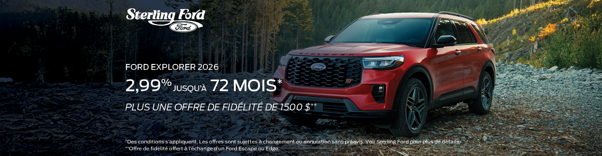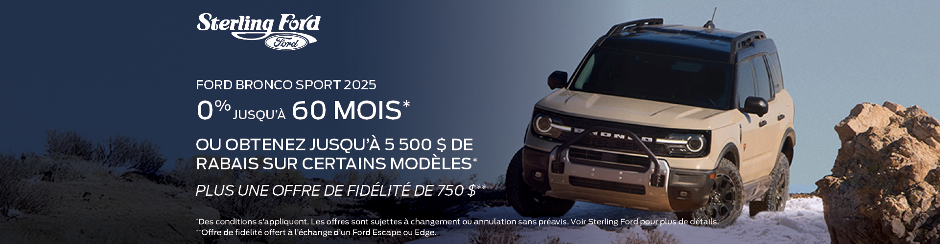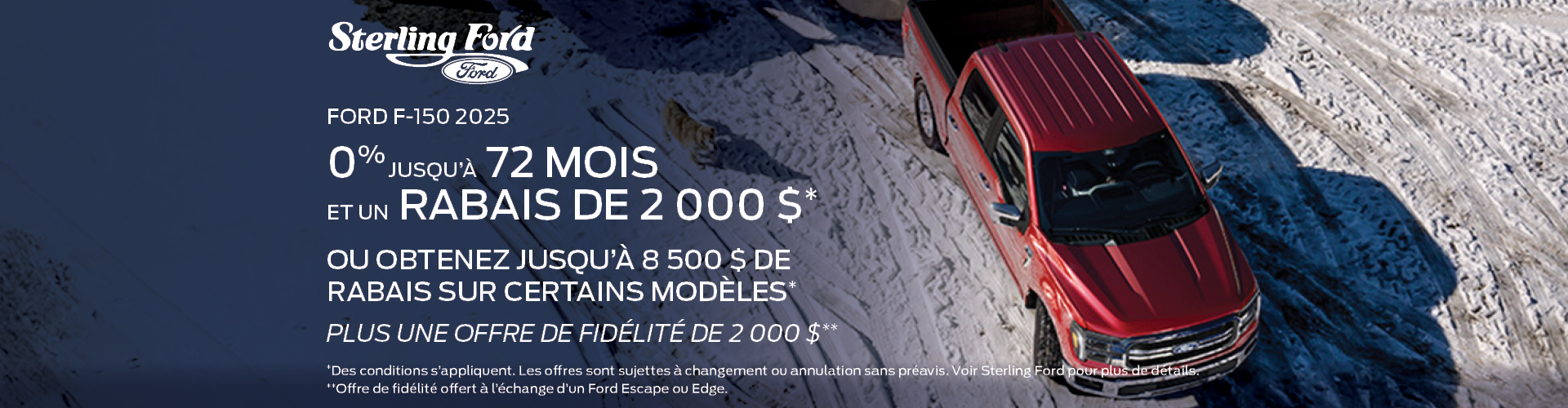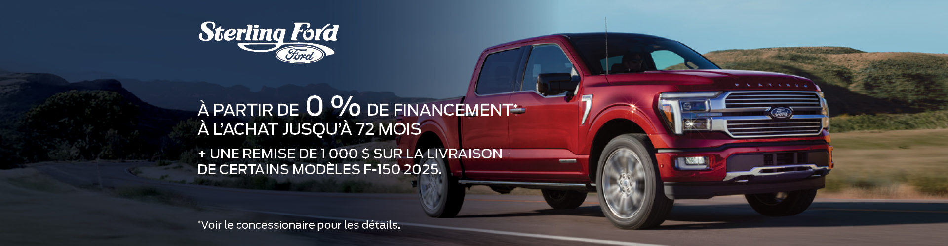 Vous recherchez un concessionnaire Ford amical, compétent et bilingue, spécialisé dans les voitures, camions et VUS Ford neufs et d’occasion à Ottawa et dans les environs tels qu’Orléans, Gatineau, Hull et Kanata ? Sterling Ford est votre destination idéale. Avec le plus grand choix de véhicules Ford neufs à Ottawa, nous sommes fiers d’offrir un service client exceptionnel. Que vous recherchiez un nouveau Ford F-150, Bronco, Escape, Mach-e, Lightning, Transit, Mustang, Edge ou Explorer, nous avons le véhicule parfait pour répondre à vos besoins, avec une large sélection des derniers modèles et style Ford. Visitez notre salle de montre dès aujourd’hui et découvrez la différence Sterling Ford — où votre prochain Ford vous attend !