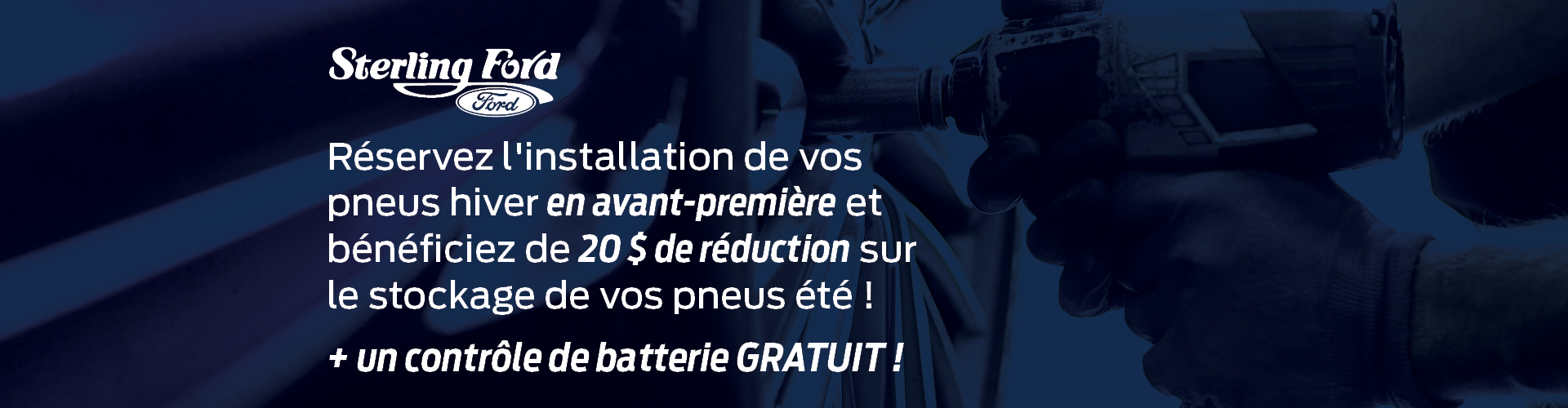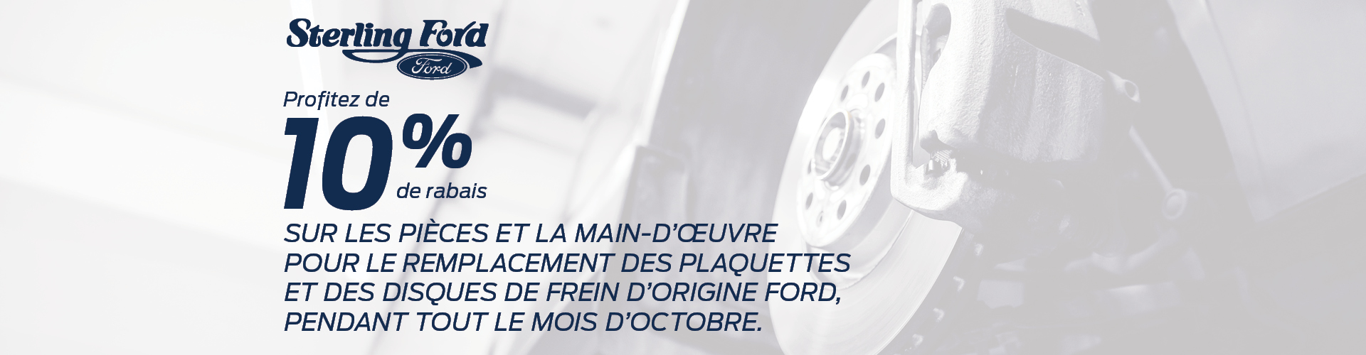 Chez Sterling Ford, nous croyons en la valeur exceptionnelle tout en offrant un service de qualité supérieure. Profitez de nos promotions limitées sur les changements d’huile, les rotations de pneus, les réparations de freins et bien plus encore. Que vous soyez à Ottawa, Orléans, Kanata, Gatineau ou Hull, nos techniciens certifiés sont prêts à fournir un service de haute qualité en utilisant des pièces d’origine Ford. Ne manquez pas ces économies incroyables – réservez votre rendez-vous dès maintenant et maintenez votre Ford en parfait état avec les soins de confiance qu’elle mérite.