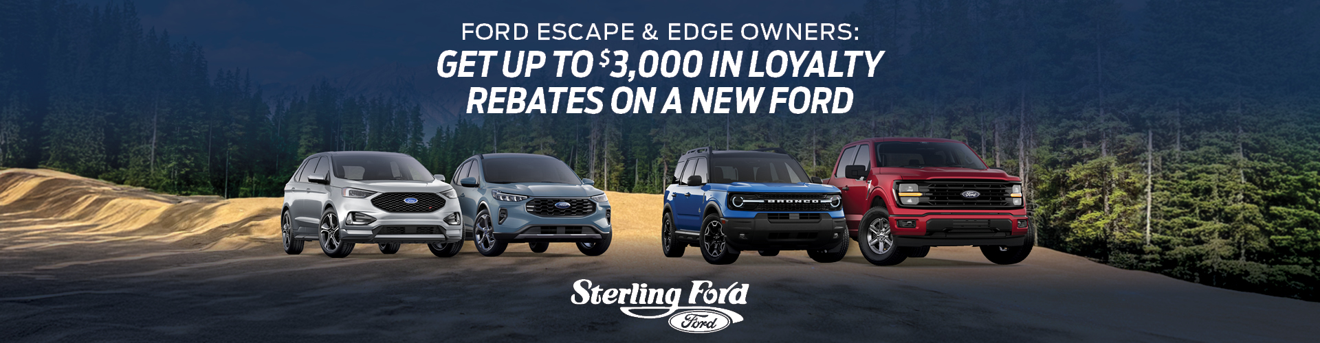 Looking for a friendly, knowledgeable, and bilingual Ford dealership specializing in new and used Ford cars, trucks, and SUVs in Ottawa and nearby areas like Orleans, Gatineau, Hull, and Kanata? Sterling Ford is your go-to destination. With the biggest selection of new Ford vehicles in Ottawa, we pride ourselves on delivering exceptional customer service. Whether you’re looking for a new Ford F-150, Bronco, Escape, Mach-e, Lightning, Transit, Mustang, Edge or Explorer, we have the perfect vehicle to meet your needs offering a wide selection of the latest Ford models and trims. Visit our showroom today and experience the Sterling Ford difference—where your next Ford is waiting!
